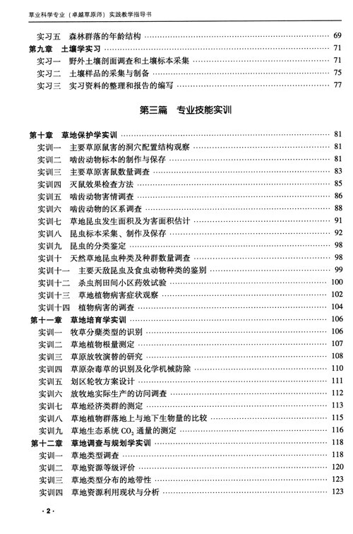 《草业科学专业(卓越草原师)实践教学指导书》编写主要从草地基本环境认知、基本技能训练、专业技能训练、实践技能训练为主线,突出每个实践的基本原理、操作技能及数据理方法。全书共五篇二十九章,第一篇为草地环境认知;第二篇为基本技能实习;第三篇为专业技能实训;第四篇为综合技能和研究创新训练;第五篇为科技论文写作与项目申报。