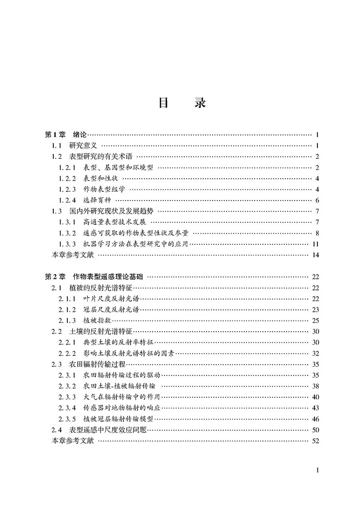 本书系统阐述作物表型遥感的基础原理与关键技术,涵盖植被与土壤光谱特征、辐射传输理论,以及从高光谱、颜色、纹理到时序特征、三维点云与深度学习模型的全方位特征提取方法。书中结合无人机遥感在玉米育种小区多品系表型解析中的实际应用,重点介绍了该技术在玉米生物量、株高、倒伏等关键性状参数反演与筛选方面的最新进展。本书可作为测绘工程、遥感科学与技术、农业资源与环境等相关专业高年级本科生及研究生的教学参考书,也可供相关领域的科研与技术工作者参考。