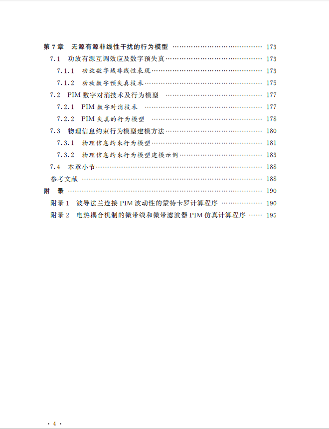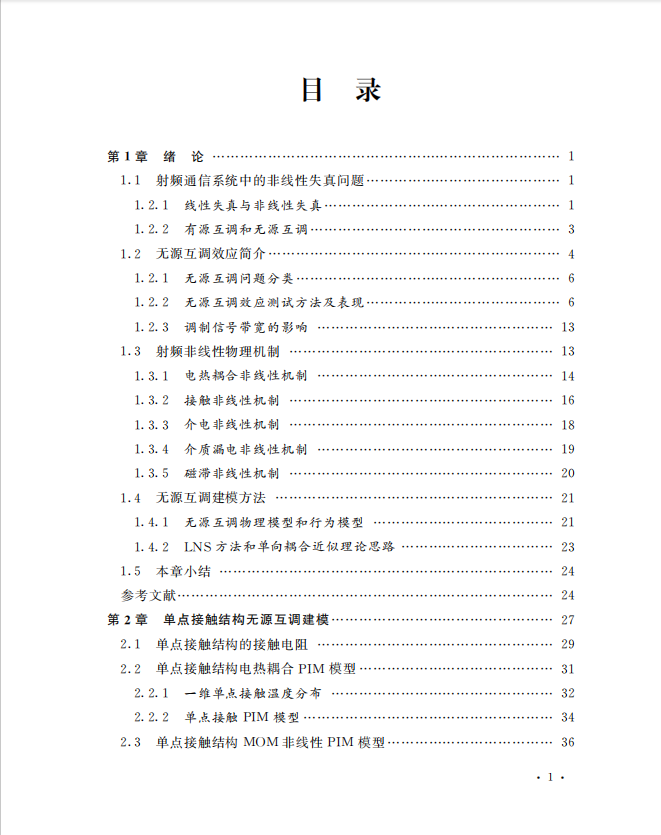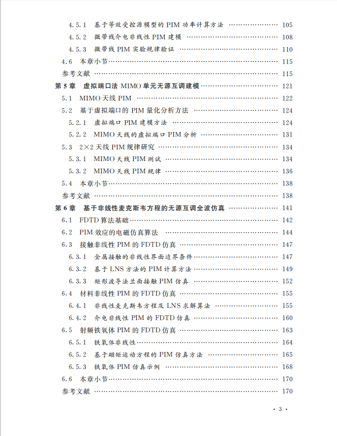 本书系统的介绍了一些物理建模和全波仿真方法,章节内容包括绪论、单点接触结构无源互调建模、射频电连接结构无源互调建模、传输矩阵法微带电路无源互调建模、虚拟端口法MIMO单元无源互调建模、基于非线性麦克斯韦方程的无源互调仿真以及无源有源非线性干扰的行为模型。本书介绍的无源互调物理模型给出了多种非线性机制以及多种射频结构的无源互调影响因素和变化规律,可用于快速诊断无源互调起因,介绍的无源互调全波仿真方法能够辅助设计低无源互调射频器件以及验证低无源互调解决方案。本书适合通信系统从业者以及致力于非线性射频效应研究的学者参考。