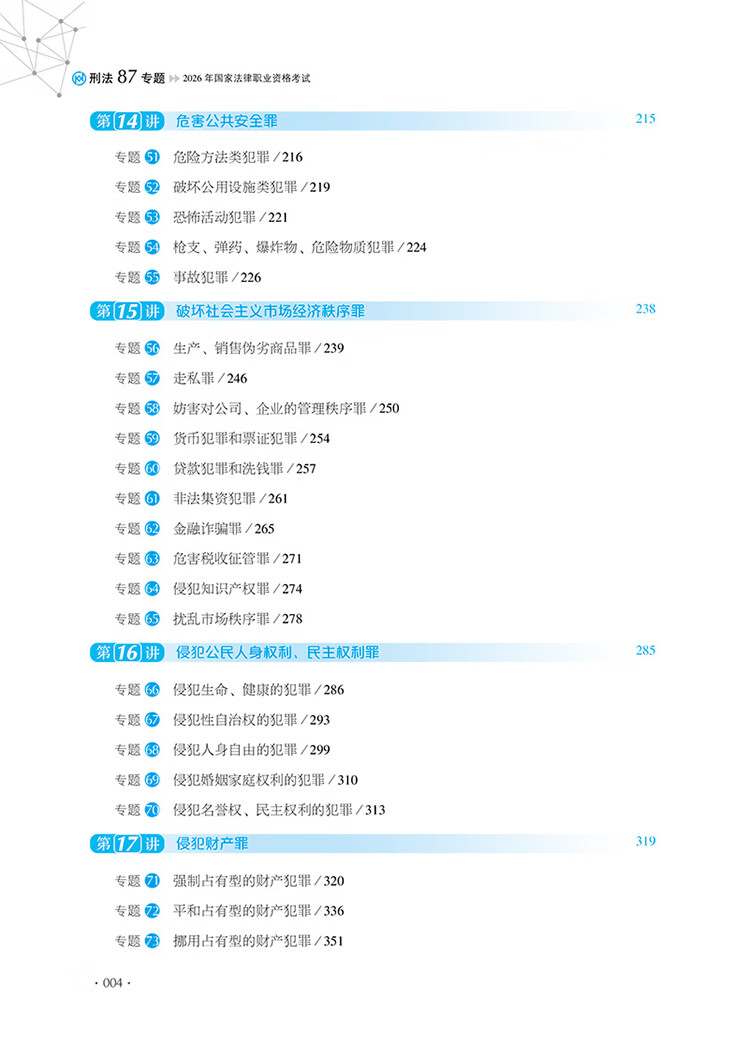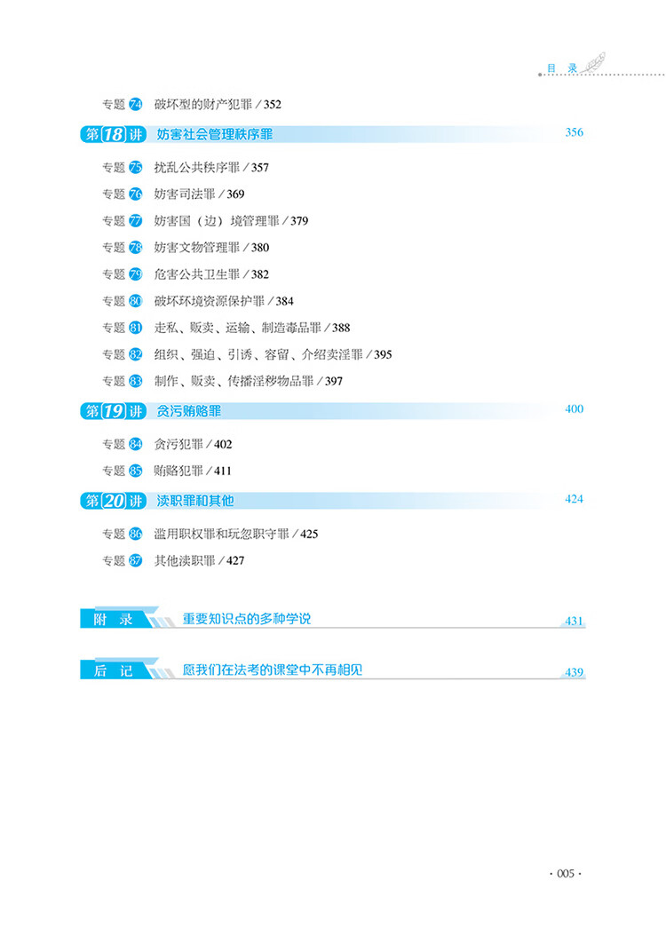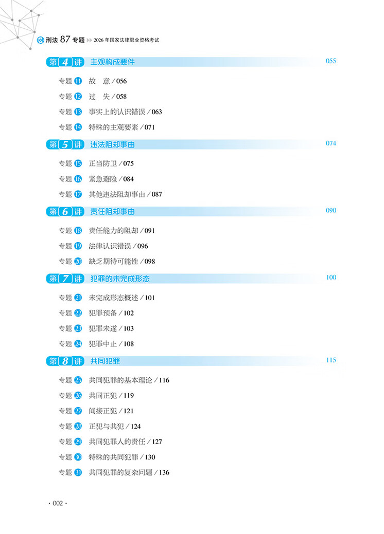 本书为厚大讲义罗翔的刑法理论卷,分为刑法总则和分则两编,刑法论、犯罪构成、行为主体、行为、行为对象与结果、因果关系、客观阻却事由、主观要件、主观阻却事由、犯罪形态、共同犯罪、罪数、刑罚的体系、刑罚的裁量、刑罚的执行和消灭、分论概说、侵犯人身权利和民主权利罪、财产犯罪、危害公共安全罪、破坏社会主义市场经济秩序罪、妨害社会管理秩序罪、贪污贿赂罪、渎职罪、危害国家安全罪,共87个专题,书中根据知识点的重要性和重难点,配有图表和生动的例子。