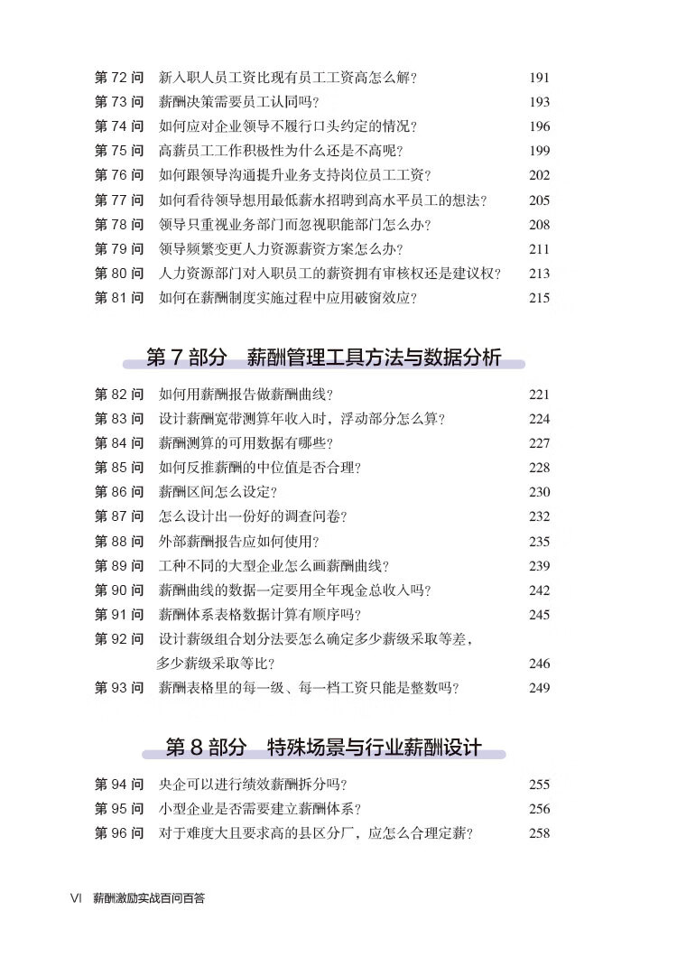 薪酬调整时机和方法等百余个薪酬激励实战中的关键问题。
