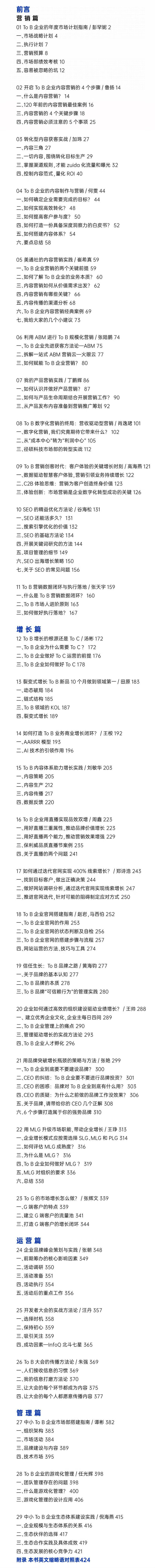 通过本书,读者可以直接获取30位来自不同领域的TO B 专家的经验,并真实感受这些成功人士是如何在实际工作中落地相关操作的。
